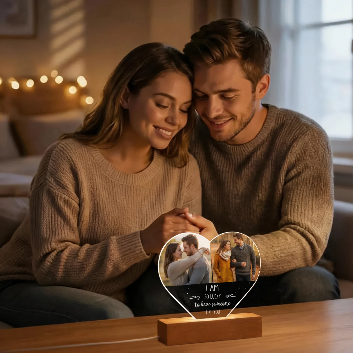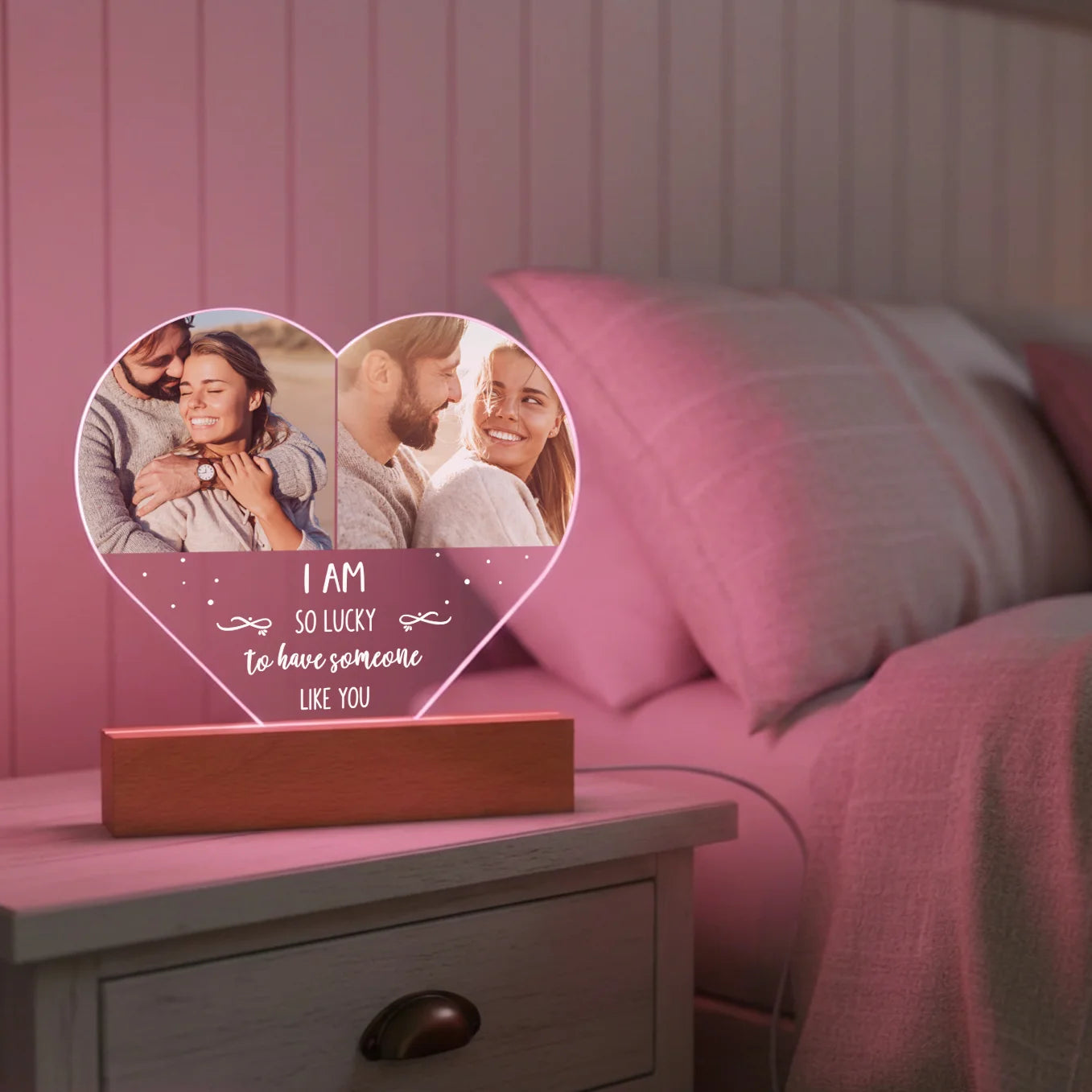 Heart Acrylic Light with Photo and Text